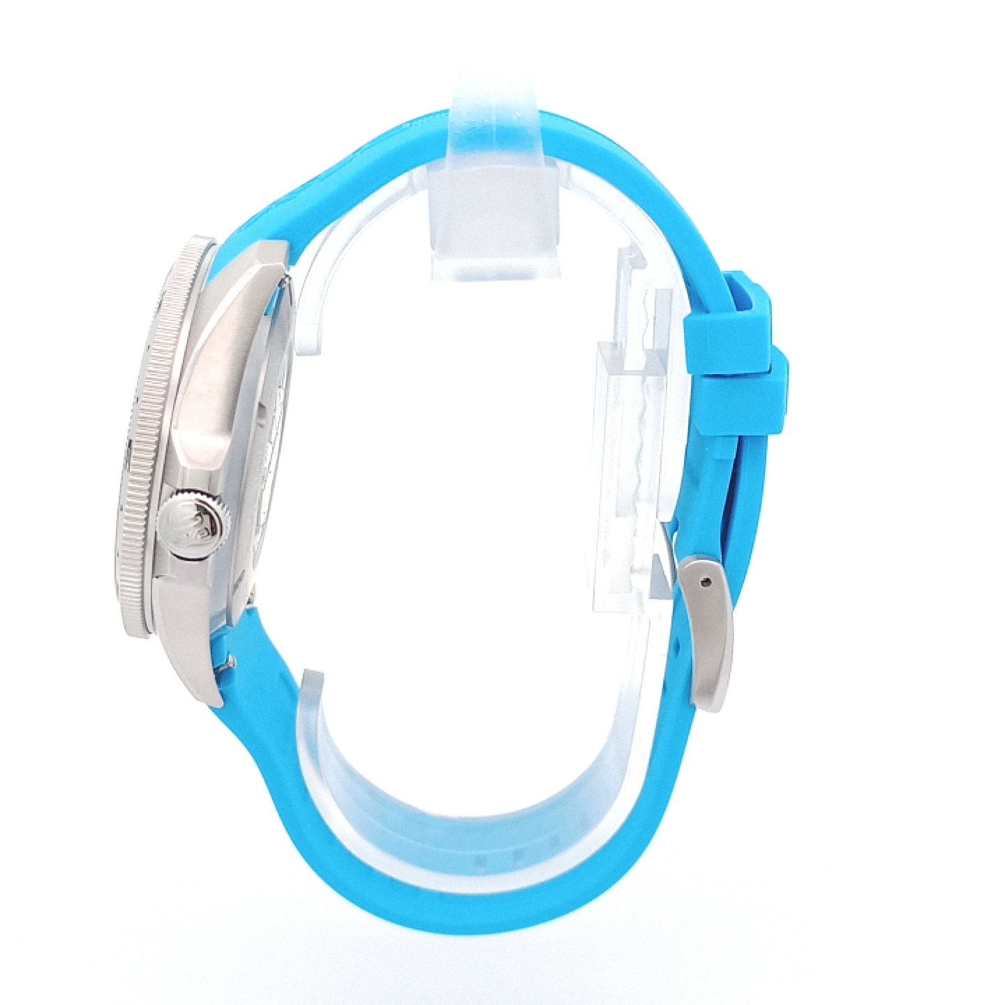Armband: Hellblaues Kautschukband mit Schnellwechsel-System und Dornschließe