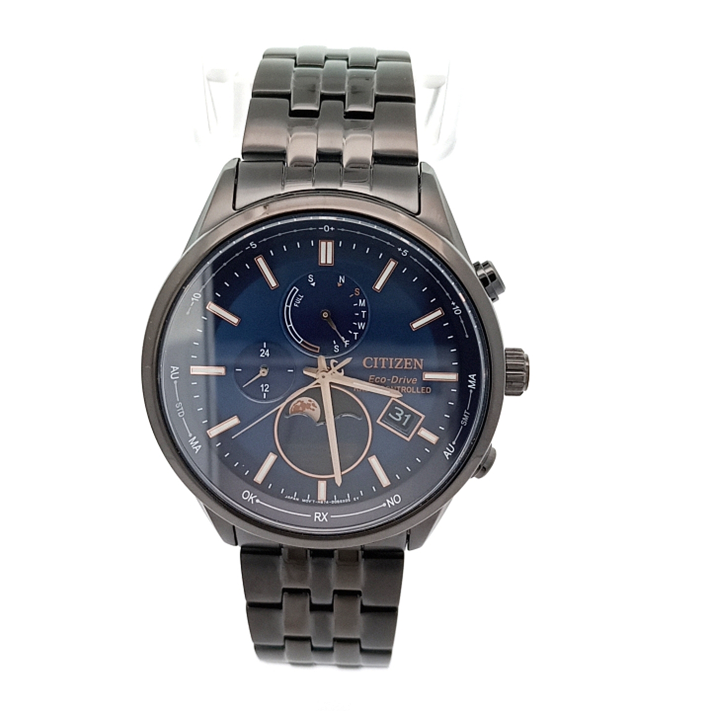 Die Citizen BY1035-56L vereint modernes Design mit höchster Präzision. Ihr tiefblaues Zifferblatt mit faszinierender Mondphasenanzeige trifft auf ein schwarzes Edelstahlgehäuse und kratzfestes Saphirglas. Dank Eco-Drive-Technologie lädt sich die Uhr mit Licht auf ganz ohne Batteriewechsel. Funkgesteuert, wasserdicht bis 10 bar und ausgestattet mit Weltzeit- und ewigem Kalender, ist sie der perfekte Begleiter für jeden Tag und Anlass. Eleganz und Technik in harmonischer Balance typisch Citizen.