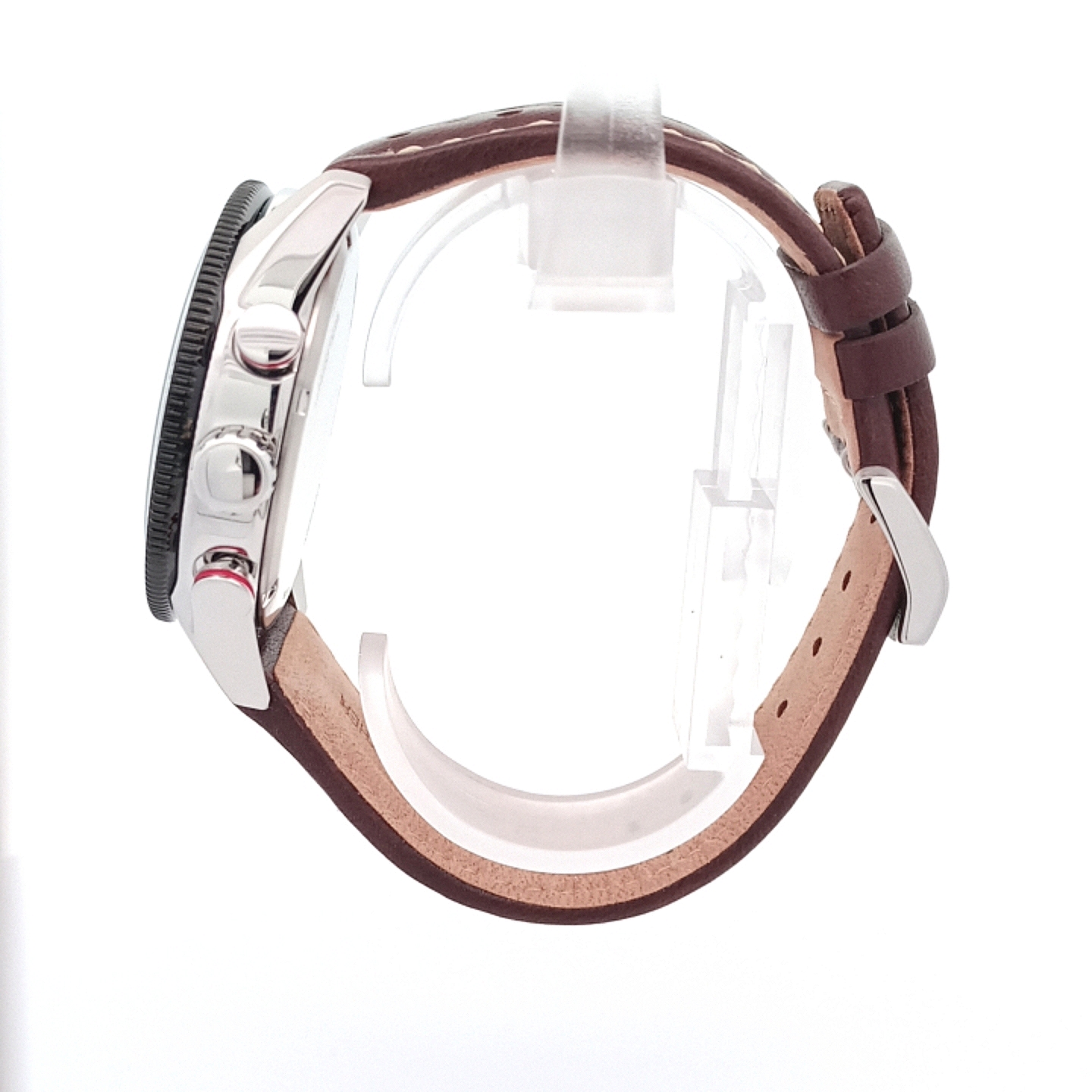 Armband: Hochwertiges braunes Lederarmband mit Dornschließe für komfortablen Sitz am Handgelenk.