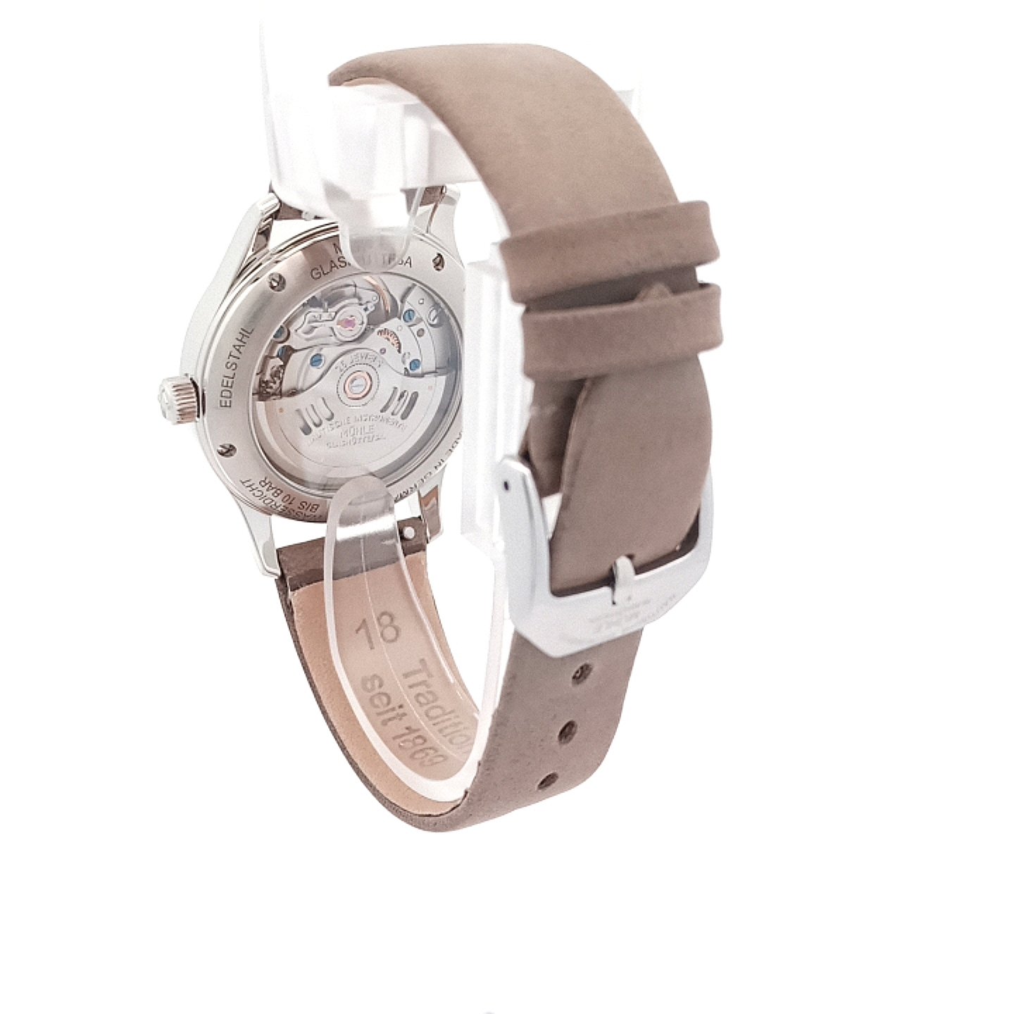 Im Inneren arbeitet das automatische Kaliber SW 200-1, fein veredelt und mit dem markentypischen Spechthalsregulierwerk ausgestattet – ein Garant für höchste Präzision und Zuverlässigkeit. Durch den verschraubten Glasboden lässt sich das aufwendig dekorierte Uhrwerk jederzeit bewundern.