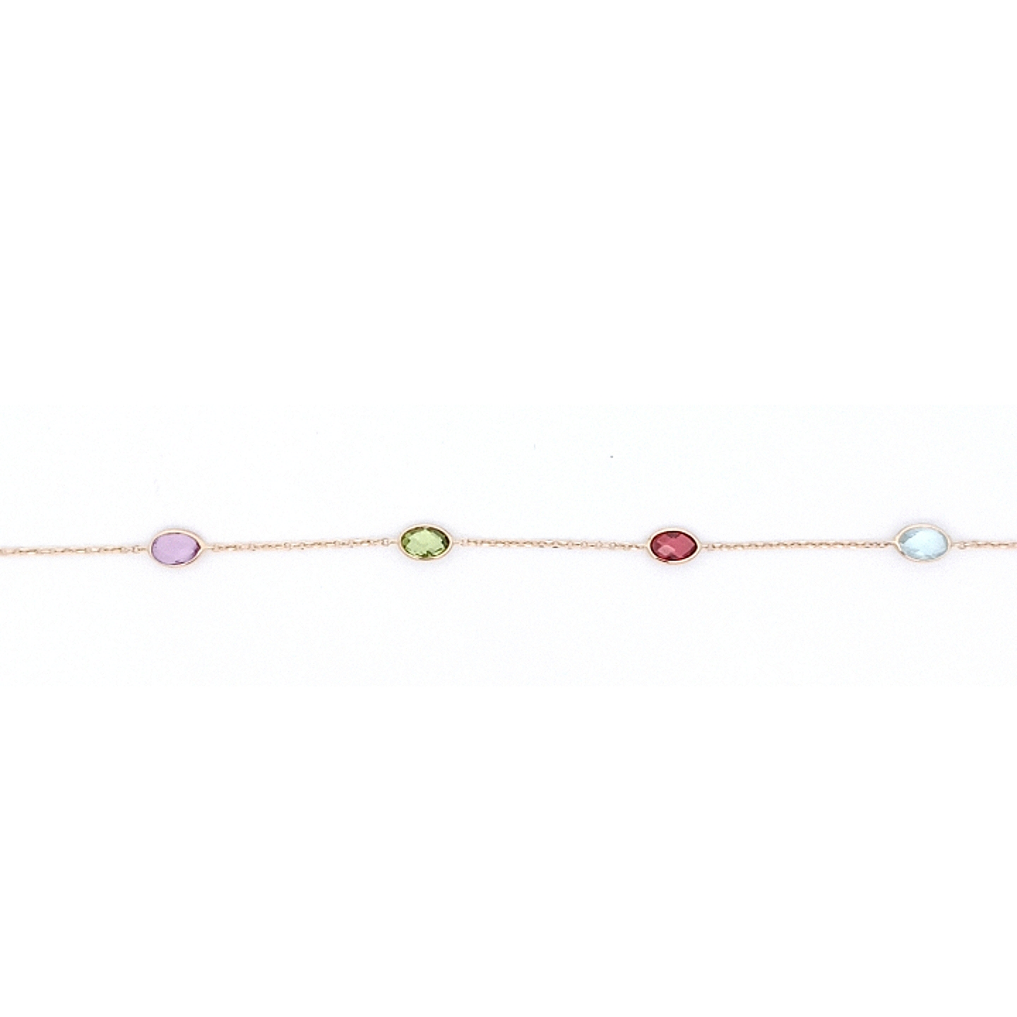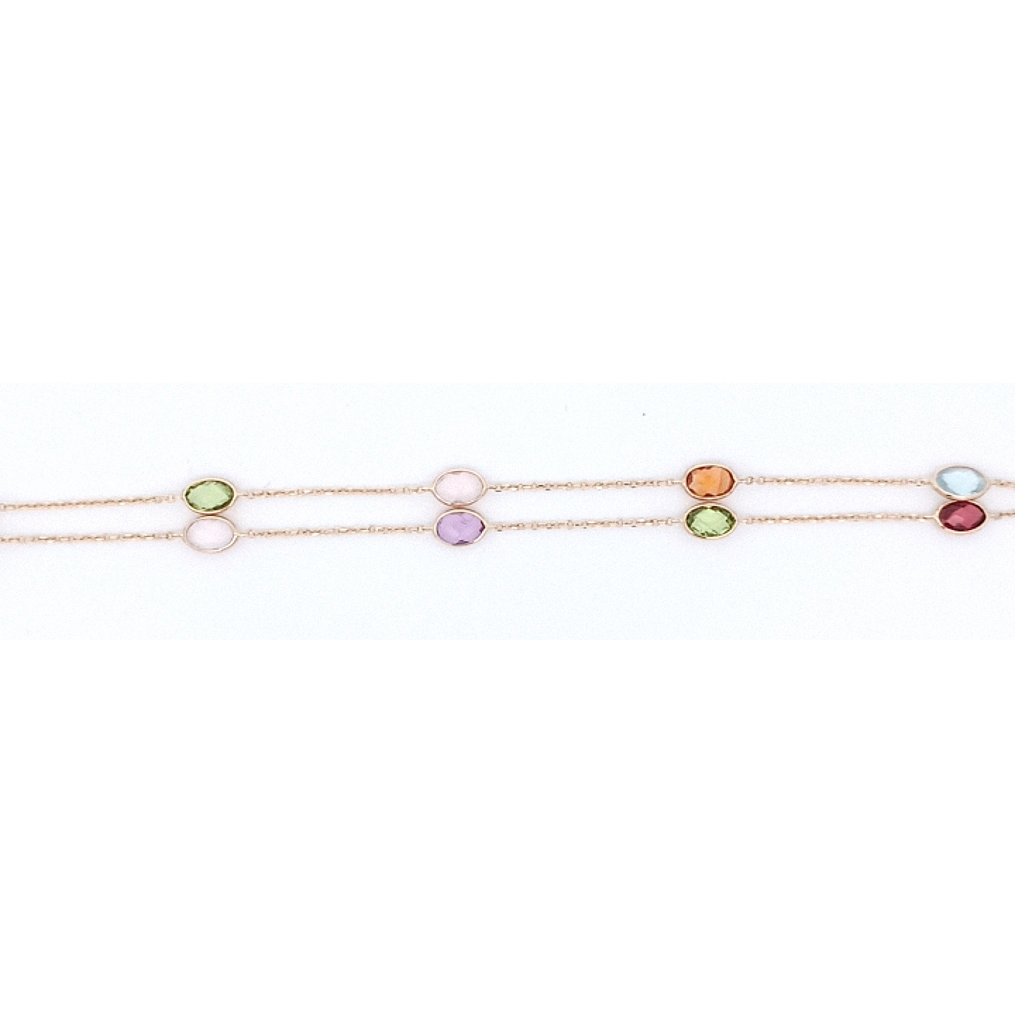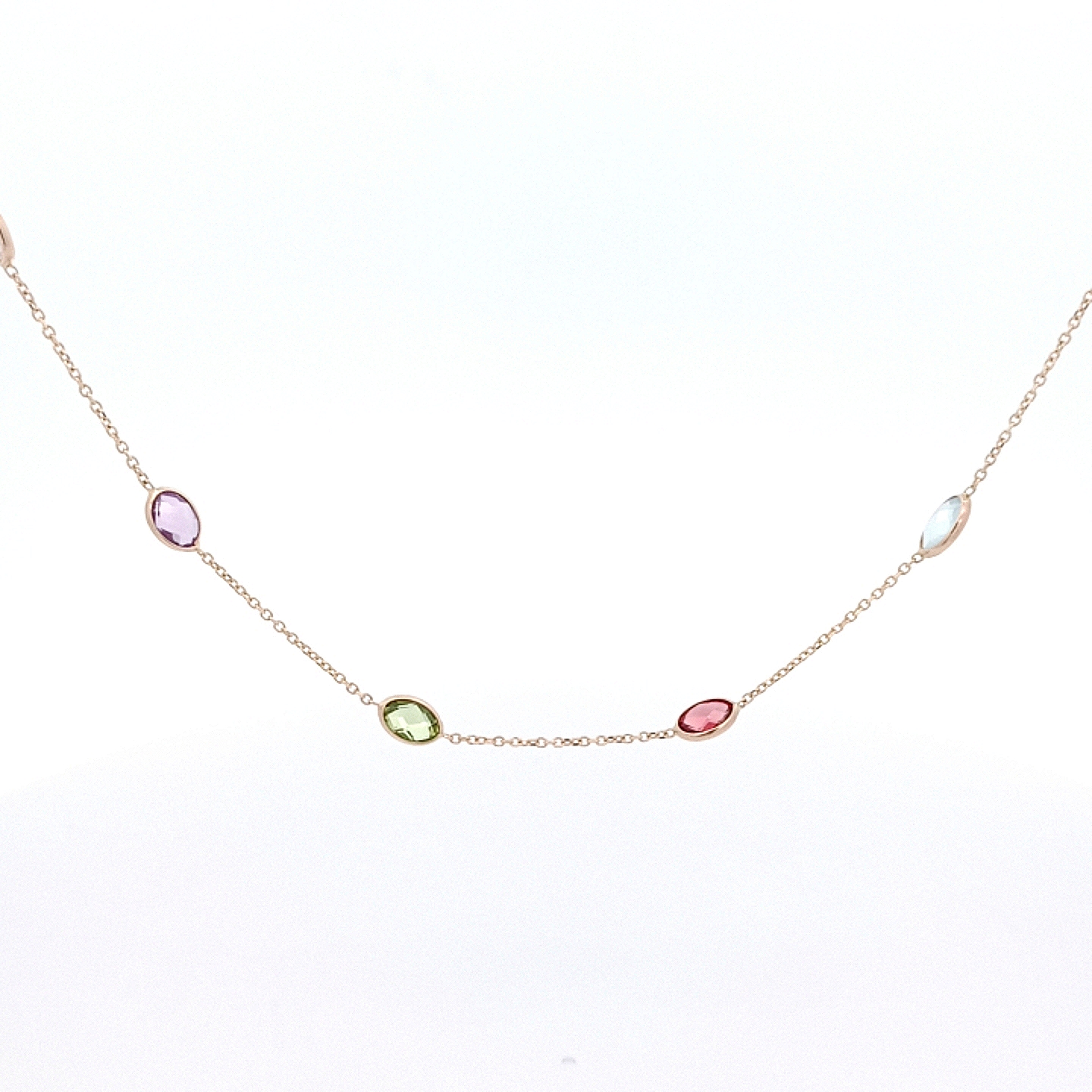 Ein elegantes Collier von Palido aus hochwertigem 585er Gelbgold, veredelt mit einer harmonischen Komposition aus echten Edelsteinen: Topas, Amethyst, Peridot, Rosenquarz, Citrin, Granat und London Blue Topas. Die feinen Farbnuancen verleihen jedem Outfit einen frischen, edlen Akzent. Dank der Zwischenöse bei 42 cm kann das Collier variabel getragen werden ideal für verschiedene Ausschnitte.